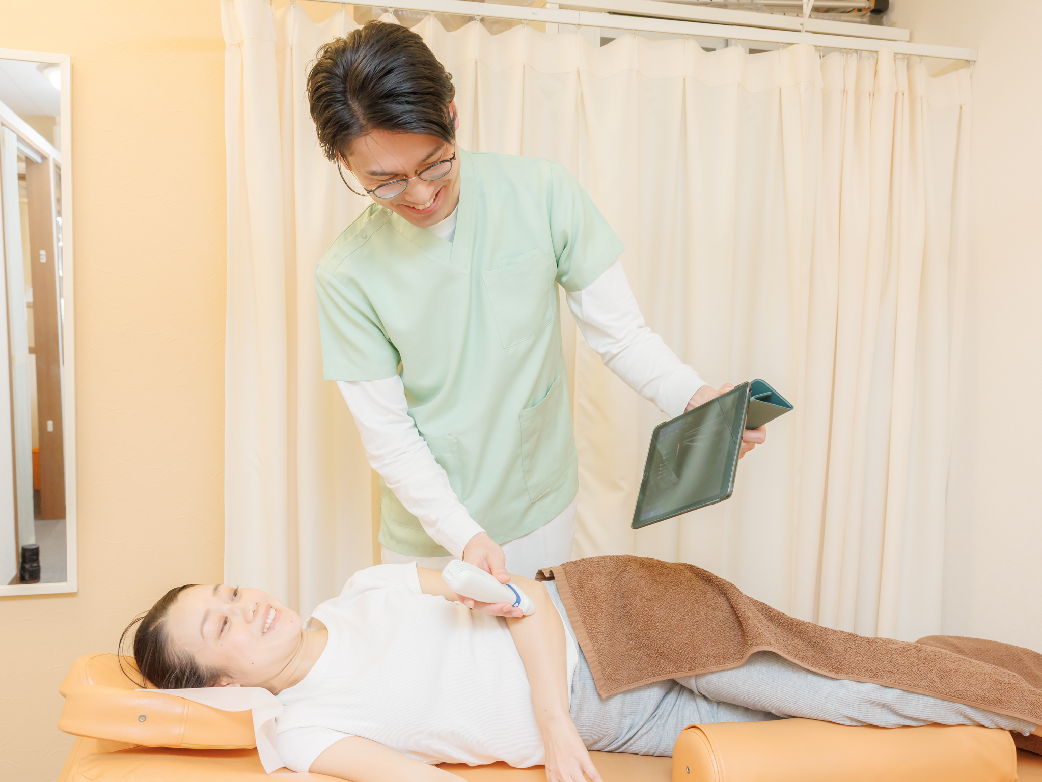 痛みのない心地よい刺激での治療を行っています。お体へかかるご負荷を極力抑えて施術しております。